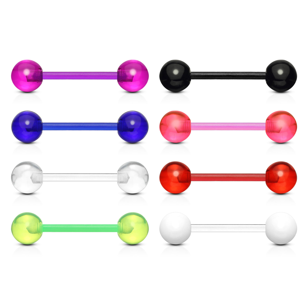 Qui puoi davvero fare un grande affare perché puoi comprare un pacco intero con 8 bellissimi piercing alla lingua con diversi colori in un solo colpo. Questi piercing alla lingua sono fatti di teflon, un materiale morbido e super comodo da utilizzare nei piercing alla lingua. Le sfere sono fatte in acrilico, un materiale gentile nel contatto con i denti oppure gengive. Sia il teflon che l'acrilico sono al 100% senza nichel, perciò devi stare assolutamente tranquillo quando utilizzi questi materiali.