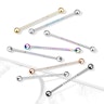 Se hai un piercing industriale all'orecchio, abbiamo qui un bellissimo gioiello che fa al caso tuo. É costituito da un'asta dritta, come la conosci tu, con due palline - una a ciascuna estremità. Al centro dell'asta è scolpita una piccola cavità dove sono posizionate 8 piccole pietre con una precisione ai limiti della perfezione. L'asta in acciaio chirurgico è disponibile in diversi colori, così come le pietre. Tuttavia, solo la versione color argento lucido può essere scelta con pietre colorate. In altre parole: le aste colorate possono essere selezionate solo con pietre chiare.