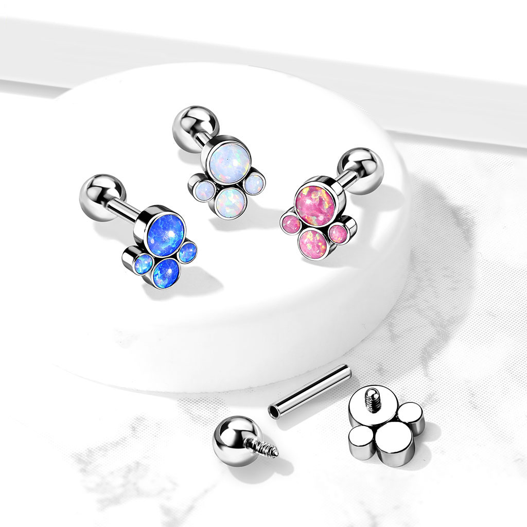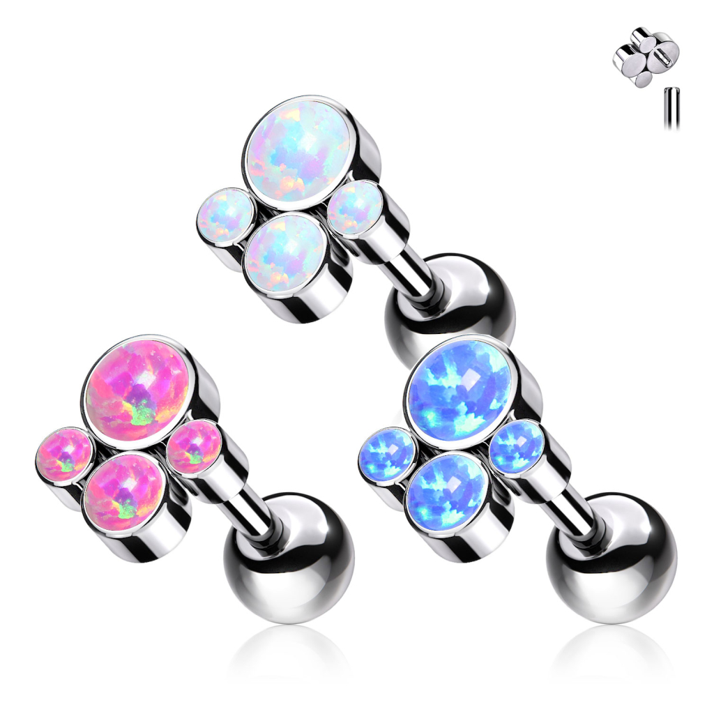Barbell in titanio con filettatura interna e 4 pietre opali
