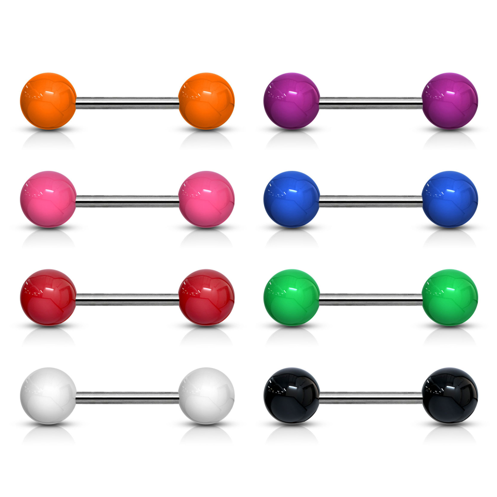 Barra alla lingua in titanio con sfere in acrilico di diversi colori