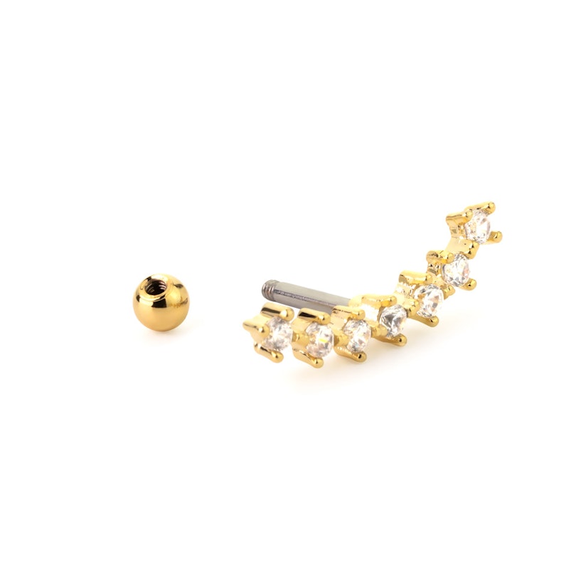 I gioielli per orecchio completano qualsiasi look e, se cerchi qualcosa di più accattivante, questo è quello per te. Il top della barra che vedi brilla come una fila di stelle nel cielo notturno, è un pezzo dallo stile inconfondibile che funziona benissimo da solo oppure abbinato ad altri gioielli. Lo puoi indossare nel tuo piercing all'helix, conch o al lobo e provare tutte le combinazioni che vuoi.