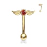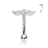 La barra è realizzata in acciaio chirurgico, come la maggior parte dei gioielli da piercing, mentre la parte decorativa è in ottone. L'intero gioiello è stato poi rivestito in rodio o oro in 14 carati, tra i quali puoi scegliere. La distanza approssimativa dalla punta di un'ala all'altra è di circa 10 mm.