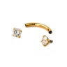 Il gioiello ha una linea molto sottile e la filettatura interna, che lo rende delicato. Le pietre giacciono saldamente incastonate sopra la barra, evitanto che il vostro piercing sia esposto ai bordi della filettatura,