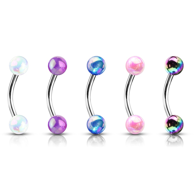 Tutto il gioiello, sia le sfere che l'asta sono realizzate in acciaio chirurgico. A differenza delle prime, l'asta non è stata rivestita, quindi sarà sempre brillante, adattandosi bene a qualsiasi colore abbiano le sfere. Lo spessore dell'asta è di 1,2 mm il che significa che è possibile utilizzarlo anche come piercing al petto, ma anche come piercing al sopracciglio.