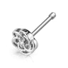 La rosa sulla parte frontale del gioiello misura circa 6 mm in diametro. Questa misura di certo non passa inosservata, e quando il gioiello si trova nel naso puoi decisamente vedere la rosa e i suoi dettagli. Dall'altra parte della barra si trova una piccola sfera che è leggermente più grande del diametro del resto della barra. La sfera serve per fare in modo che la barra non cada fuori dal piercing.