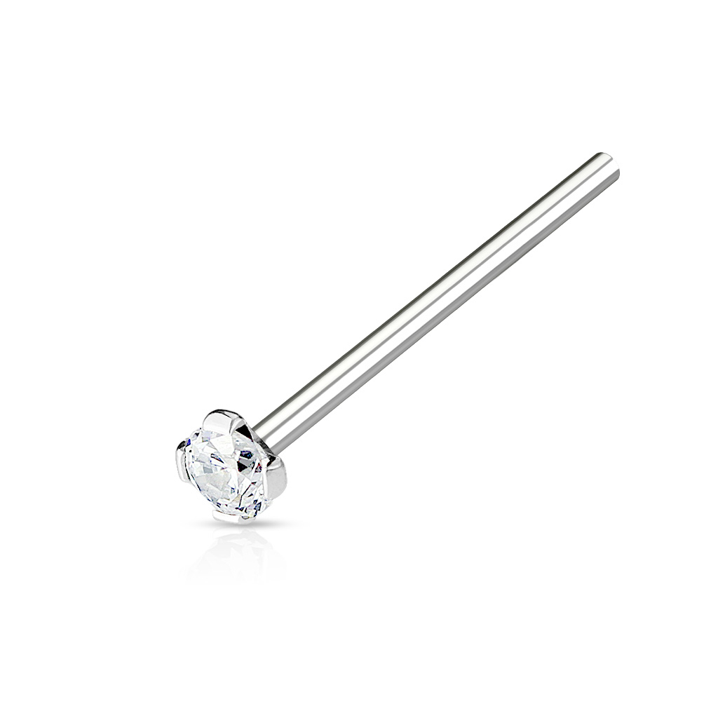 Barra da naso fishtail in acciaio chirurgico con pietra incastonata a griffe.