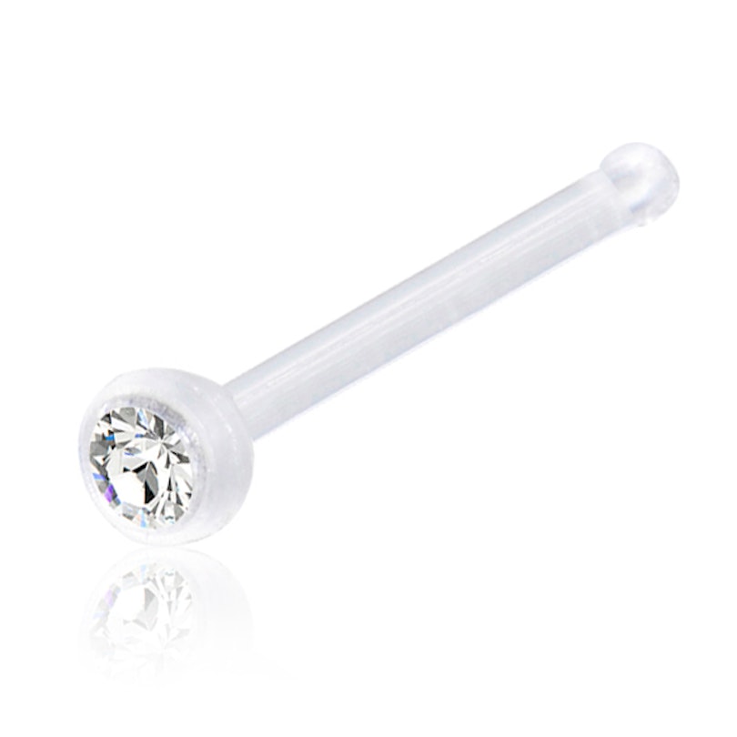 Un compromesso per un risultato discreto è questa barra in acrilico trasparente cn una piccola gemma sulla parte superiore. Un gioiello ideale se cerchi qualcosa di discreto. Inoltre, l'acrilico è molto flessibile rispetto altri materiali come l'acciaio chirurgico, un particolare che lo rende comodo da indossare: non saprai nemmeno di averlo. Infatti il peso di questa barra da naso è di solo 0,01 grammi, così poco che è difficile anche pesarlo.