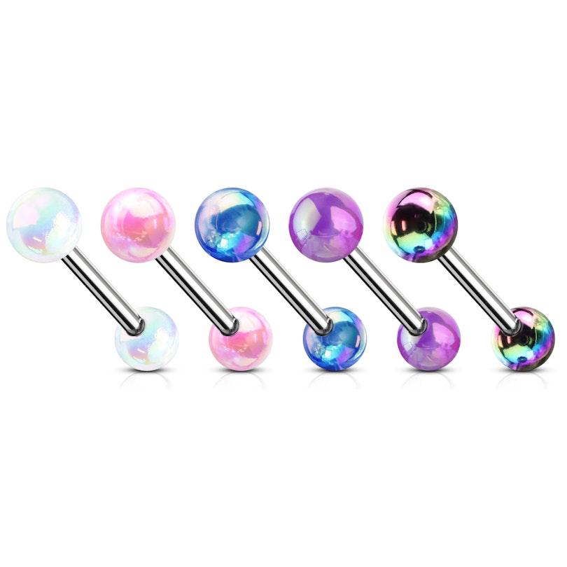 Il gioiello è realizzato in acciaio chirurgico, ma la barra non è rivestita. Ciò significa semplicemente che il suo colore originale grigio brillante sarà sempre lo stesso a prescindere dal colore di sfere che sceglierai.