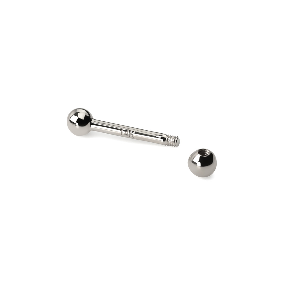 Qui hai la possibilità di mettere le tue mani su un gioiello in vero oro 14 carati che può essere utilizzato in molte parti del corpo. Questo pezzo qui è composto da una barra con sfere ad entrambi gli estremi ed è disponibile in diversi diametri del filo così come lunghezze, in base anche a quanto desideri spendere. Il modello più piccolo ha un diametro del filo di 1,2 mm. ed è disponibile in tre lunghezze mentre il modello da 1,6 mm arriva in quattro lunghezze.
