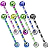 Questo modello è disponibile in 7 combinazioni di colori: la differenza è solo il colore. Oltre quello, sono totalmente identici per quanto riguarda lunghezza, spessore della barra e diametro delle sfere. La barra è realizzata in acciaio chirurgico a cui è stato aggiunto un rivestimento di colore. Se ti stai chiedendo come sono stati applicati questi colori, è semplice; le parti metalliche della barra sono state rivestite, il resto è stato ionizzato. Un trucco ingegnoso e rapido che conferisce un finish diverso.