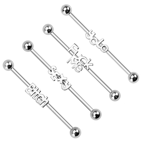 Con questa barra industrial puoi mandare un messaggio al mondo. Fuck Me è il più provocatorio. Sexy mostra la tua sicurezza. Bitch è giocoso e Yolo, acronimo per You Only Live Once ( si vive una volta sola), è per chi vuole vivere la propria vita al massimo.