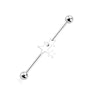 Fantastica barra industrial fatta in acciaio chirurgico, un materiale resistente che permette al gioiello di rimanere bello a lungo. Questa barra è decorata con tre dolci stelle a cinque punte, in diverse misure. Il gioiello misura in totale 38 mm. ed è fatto per attraversare due buchi da piercing nell'orecchio. Viene quindi utilizzato in quel piercing chiamato Industrial.