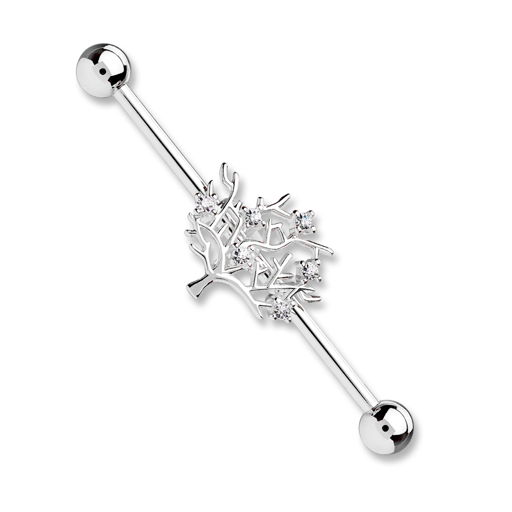 Che tipo di albero sia quello raffigurato su questa barra è opinabile. Si tratta di un albero privo di foglie, che però presenta alcune pietre brillanti che somigliano a frutti. La barra è lunga 38 mm, l'albero può essere spostato lungo essa ed è fissato tramite due piccoli anelli metallici. Dietro l'albero è posto un piccolo anello in gomma che ti permette di attaccarlo dove vuoi.