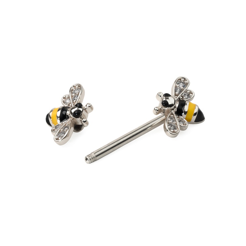 Se stai cercando un design unico per il tuo piercing al capezzolo abbiamo un favoloso prodotto giusto per te. Il gioiello che ti presentiamo consiste in una barra dritta di 14 mm, che varia in base a come sta su di te, data la distanza delle due api che vi siedono sopra.