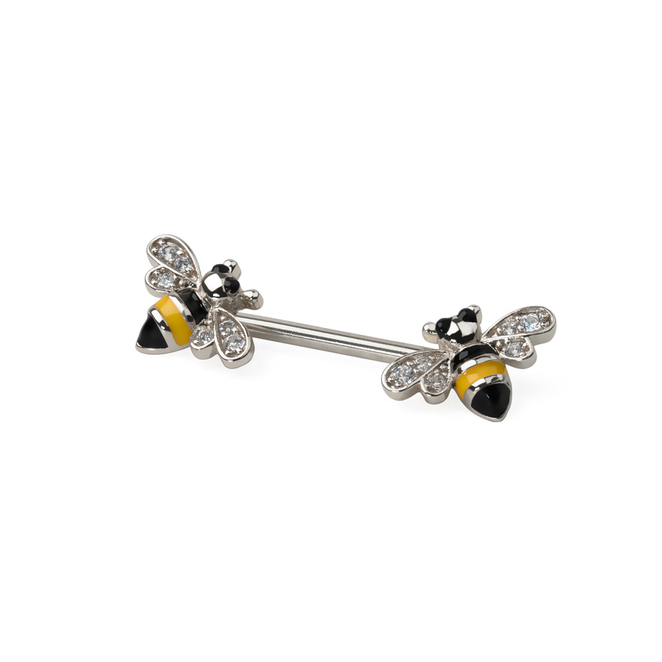Se stai cercando un design unico per il tuo piercing al capezzolo abbiamo un favoloso prodotto giusto per te. Il gioiello che ti presentiamo consiste in una barra dritta di 14 mm, che varia in base a come sta su di te, data la distanza delle due api che vi siedono sopra.