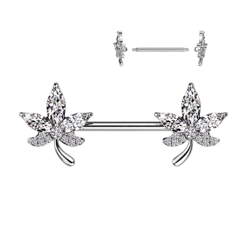 Barra per capezzolo con brillanti pietre a foglia ai lati
