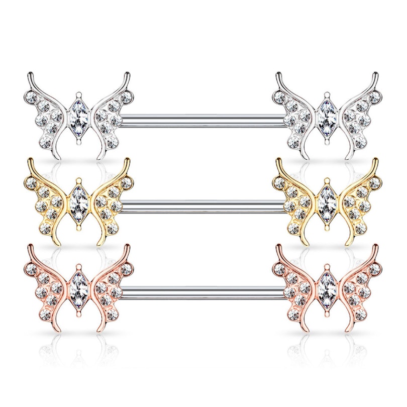 Nome: Barra per capezzolo con farfalle decorate con pietre