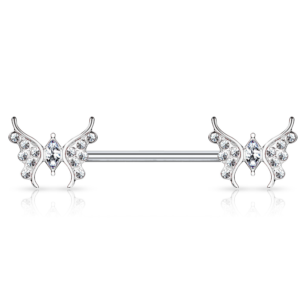 Nome: Barra per capezzolo con farfalle decorate con pietre