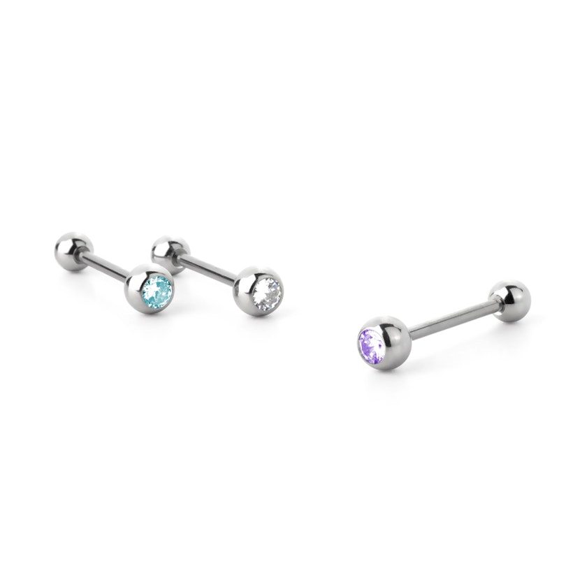 Acquista questa bellissima ed elegante barra per lingua con una pietra incastonata nella sfera superiore.