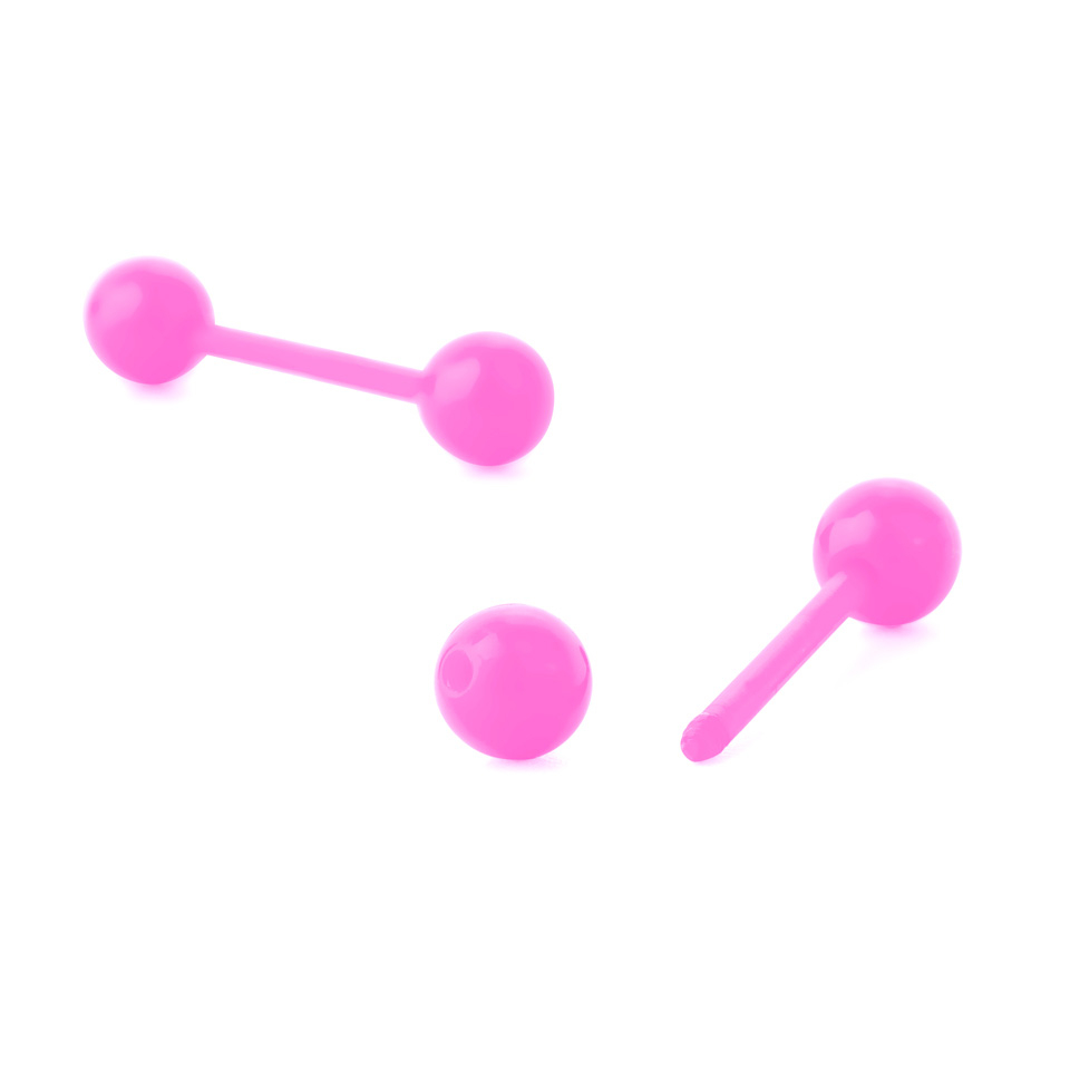 Le sfere ad ogni estremità misurano 6 mm, il diametro del filo è di 1,6 mm e la lunghezza è di 16 mm, misure che lo rendono adatto alla maggior parte dei piercing alla lingua.
