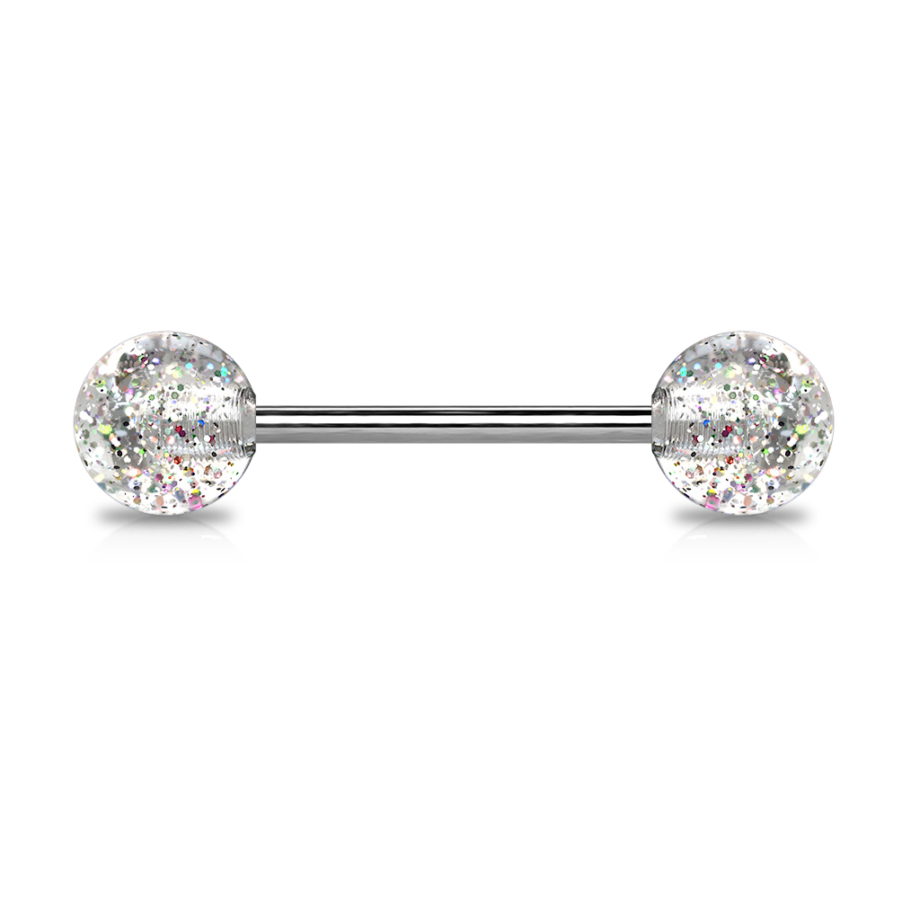 Barra per lingua in titanio con sfere glitterate