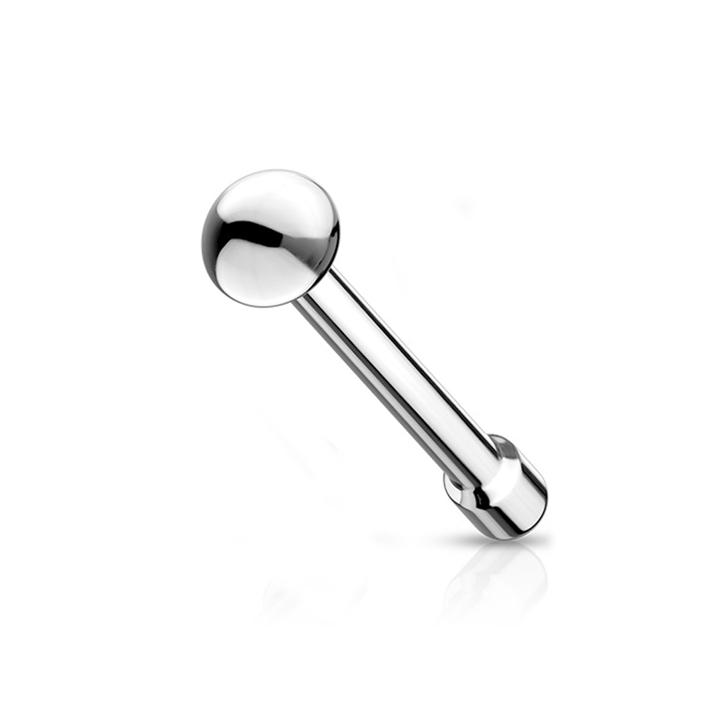Questa barra per naso con mezza sfera è semplice e pratica al massimo. La piccola mezza sfera si appoggia alla narice ed è ideale da indossare con qualsiasi outfit. Il gioiello è facile da inserire, rimane fisso al suo posto e mantiene il tuo look minimal ma per nulla noioso.
