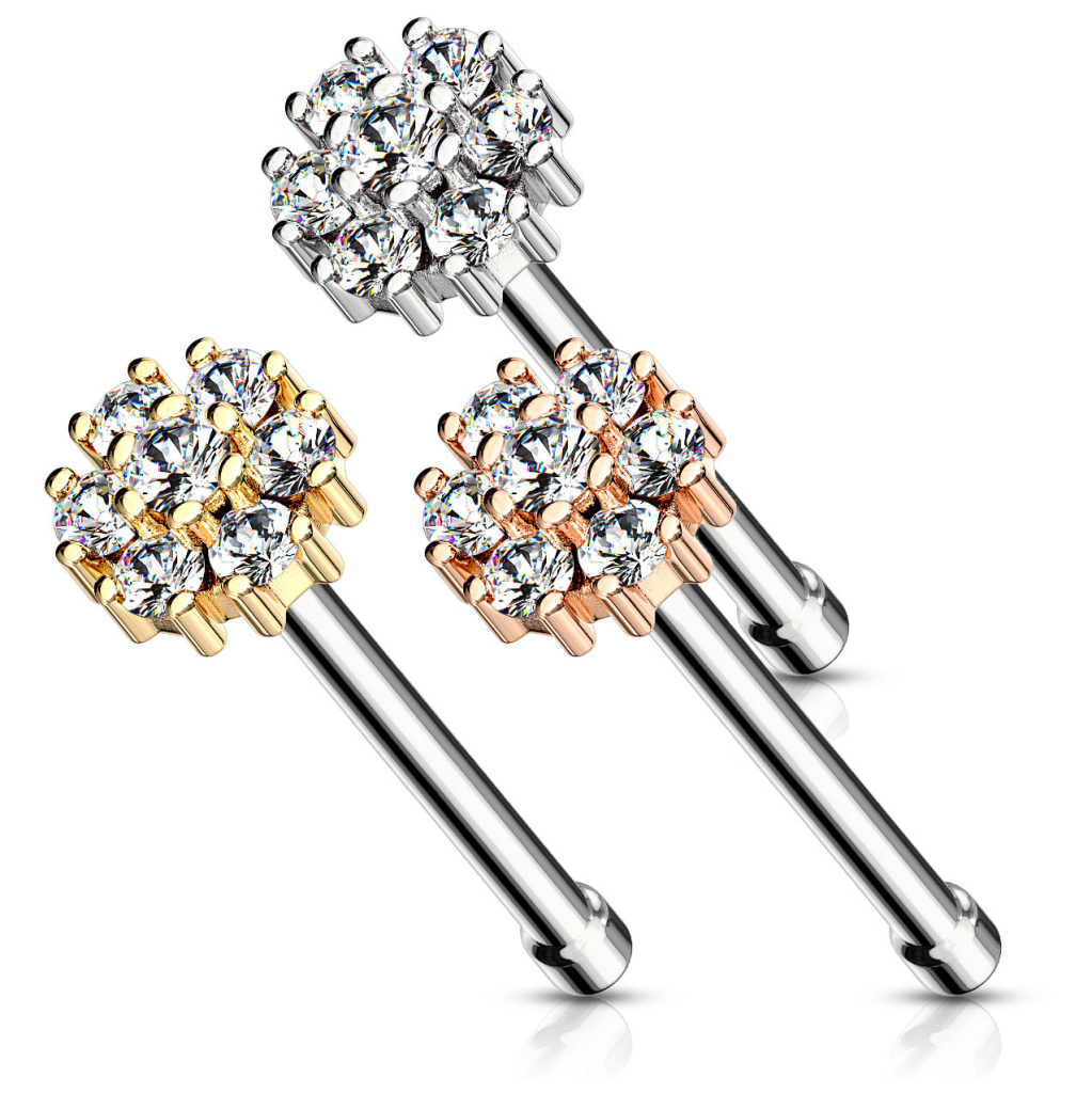 Nome: Barra per naso con top rotondo e tante pietre