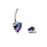 Questa barra per ombelico con due cuori di tonalità rosa-viola presenta due bellissimi cuori che hanno l'effetto di brillare di rosa o viola a seconda della luce e angolazione. Nella parte superiore il cuore è più piccolo e misura 6 mm nel punto più largo, mentre nella parte inferiore è più grande, di 7,5 mm.