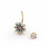 Questa graziosa barra per ombelico è perfetta per la stagione dei crop top. Il fiore che la caratterizza è formato da tante piccole pietre in diverse tonalità di blu e una pietra centrale gialla. La sfera superiore ha una pietra trasparente.