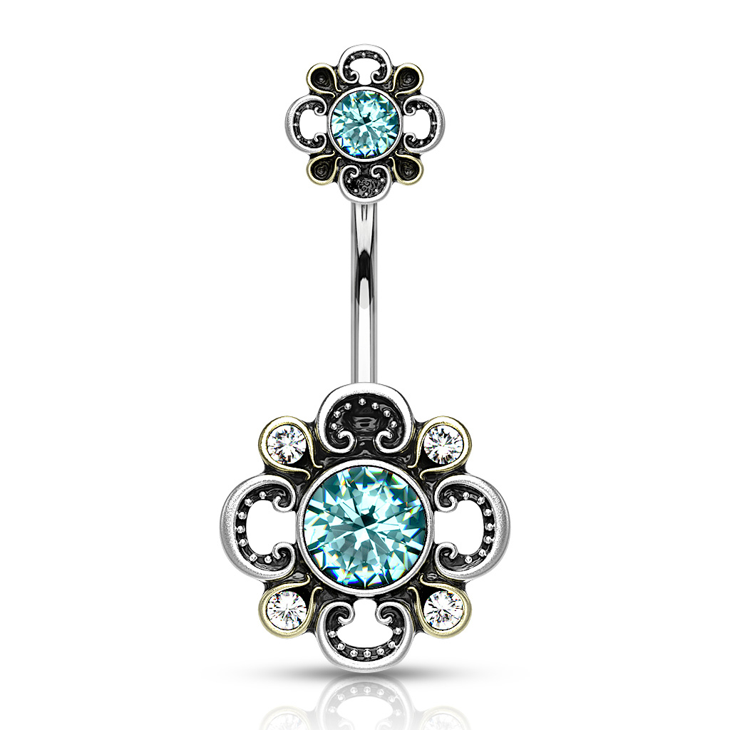Nome: Barra per ombelico con fiore in filigrana e foglie di gemme