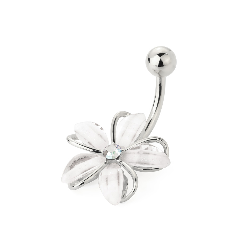 Stai cercando un gioiello chic? Questa barra ombelico presenta un fiore ricco di dettagli nella parte inferiore e una classica sfera di chiusura nella parte superiore. Puoi scegliere tra tre bellissimi colori quello che si abbina al tuo stile.