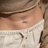 Barra per ombelico con grande pietra e grazioso top a fiore