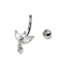 Preparati a brillare con questa favolosa barra per ombelico in acciaio chirurgico impreziosita da un trio di pietre zirconia dal taglio marquise e un delicato pendente con pietra incastonata.