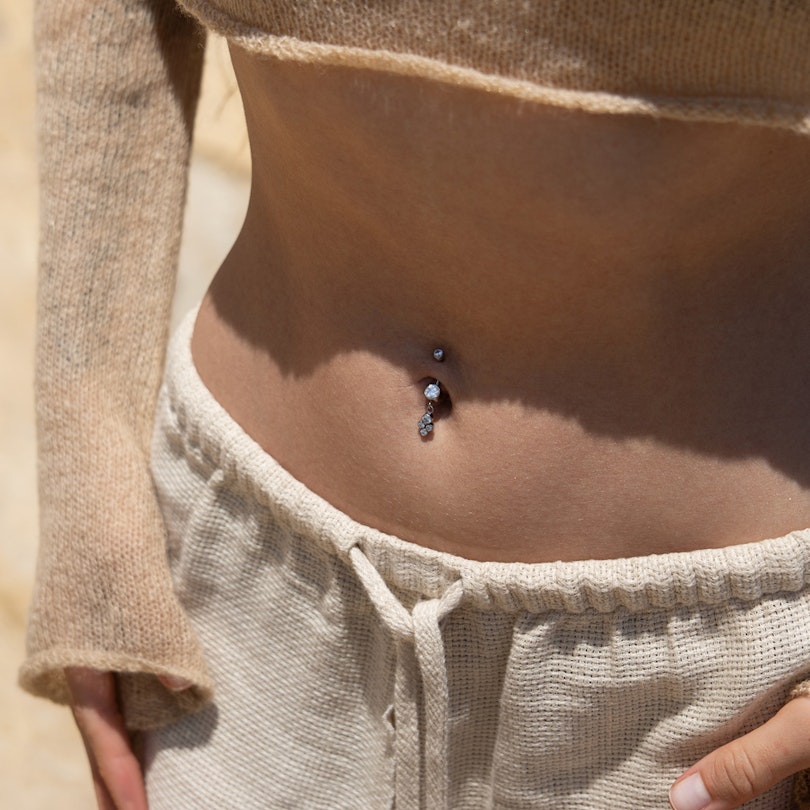 Nome: Barra per ombelico in titanio con pendente a grappolo di pietre