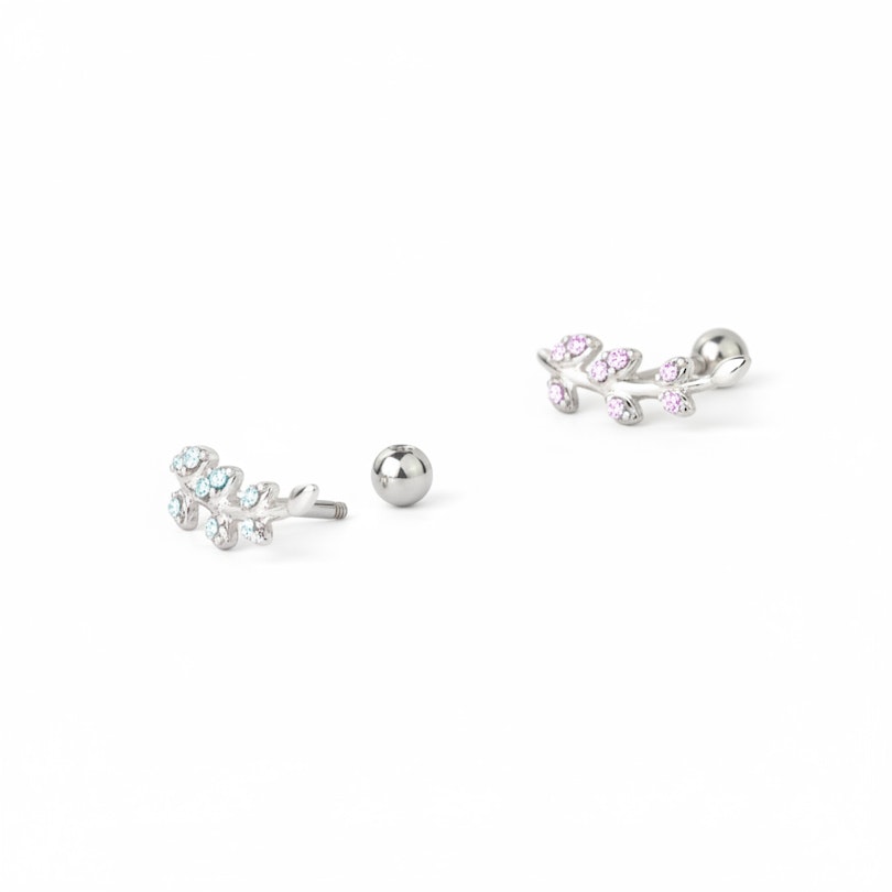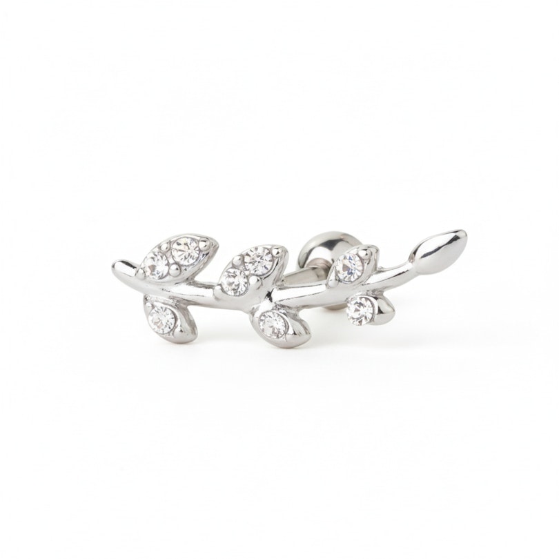 Nome: Barra per orecchio con foglie tempestate di pietre