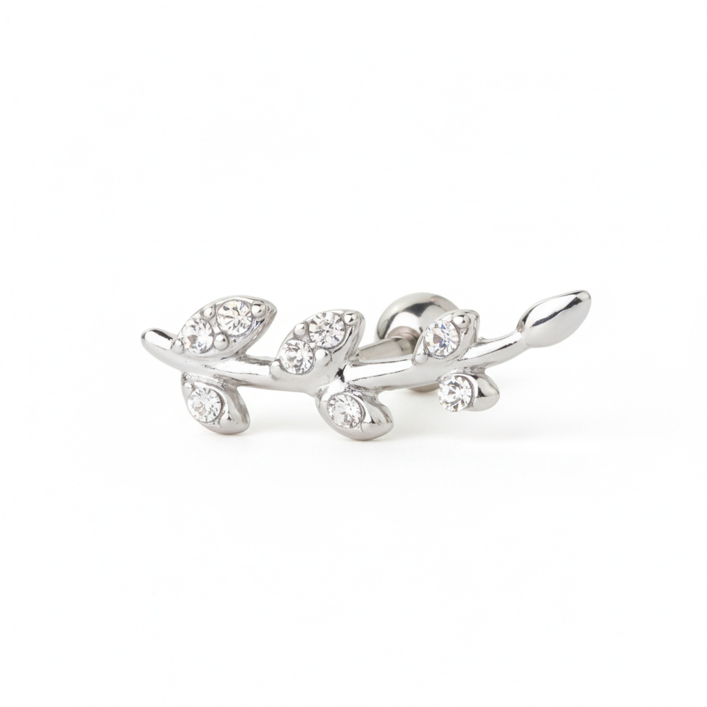 Nome: Barra per orecchio con foglie tempestate di pietre