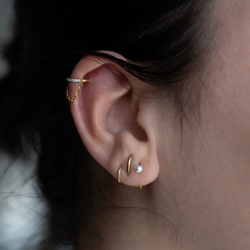 Il cerchio aperto in titanio con perla conferisce un look moderno e delicato alle tue orecchie. Una singola perla adorna l'estremità della curva, per un effetto più morbido e naturale. Per indossarlo, fai passare l'estremità aperta attraverso il lobo e ruotalo in avanti finché non ti sta comodo. Puoi portarlo sul lobo inferiore o superiore e mixarlo con altri gioielli quando ti va di cambiare.