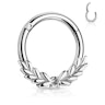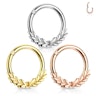 Questo gioiello è un cerchio con cardine realizzato in acciaio chirurgico. Le foglie spuntano dalla parte bassa del cerchio e si estendono lungo i lati. Non occupano tutto il cerchio perché ciò renderebbe impossibile indossarlo.