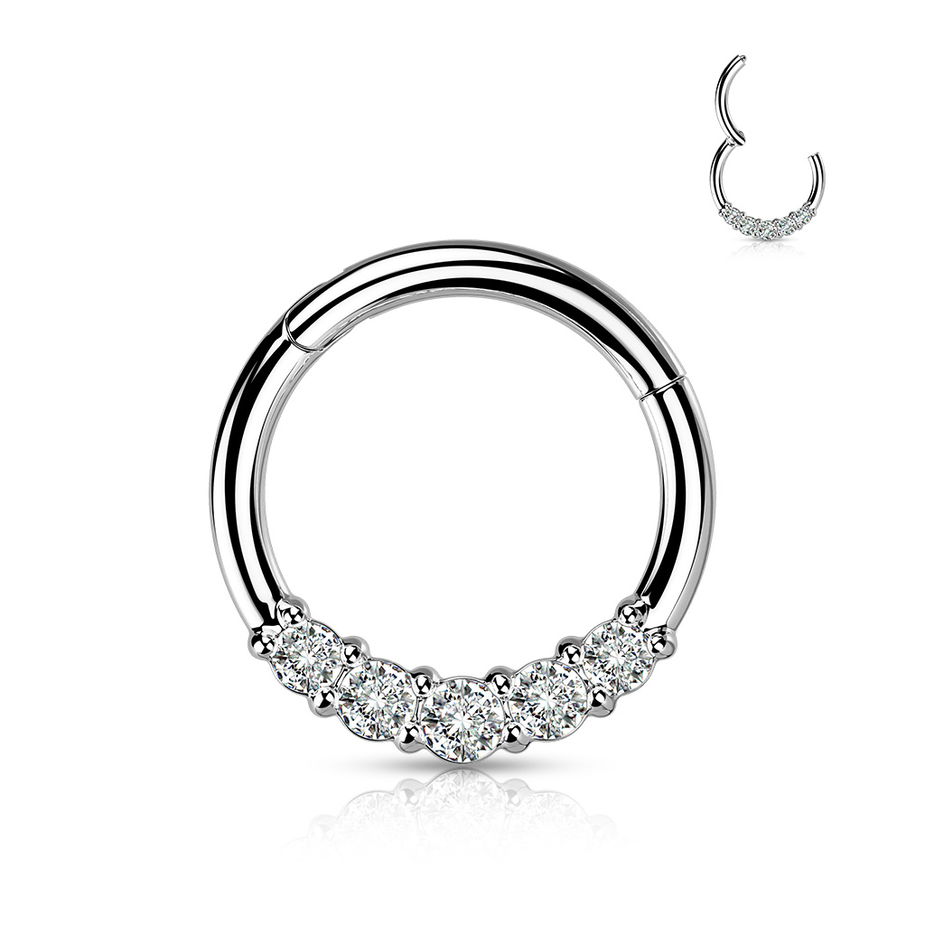 Se ti piace cambiare spesso stile, questo elegante gioiello ti renderà le cose più semplici. É il momento di dire addio a pezzi che si perdono e complicazioni quando devi cambiare gioiello: il cerchio che ti proponiamo qui è dotato di meccanismo di chiusura a cardine. Per aprirlo basta tirare verso l'alto la parte incernierata, poi inserire il gioiello nel piercing e richiudere quindi il segmento fino a sentire un click. Così facile e veloce, ci metterai un attimo ad indossare questo gioiello che ti farà brillare!