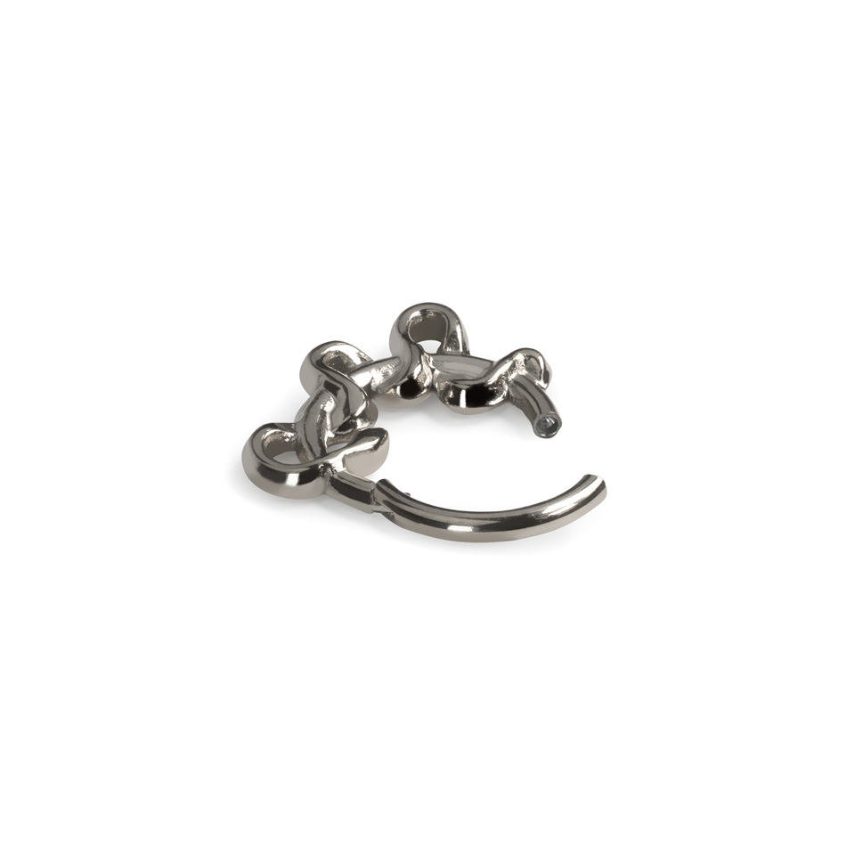 Questo cerchio con cardine e design frontale con serpente avrà un look favoloso in diversi piercing, inclusi septum, conch, daith e rook. Realizzato in acciaio chirurgico, è waterproof e adatto alla maggior parte delle pelli. La chiusura con cardine lo rende facilissimo da inserire e fissare nel piercing.