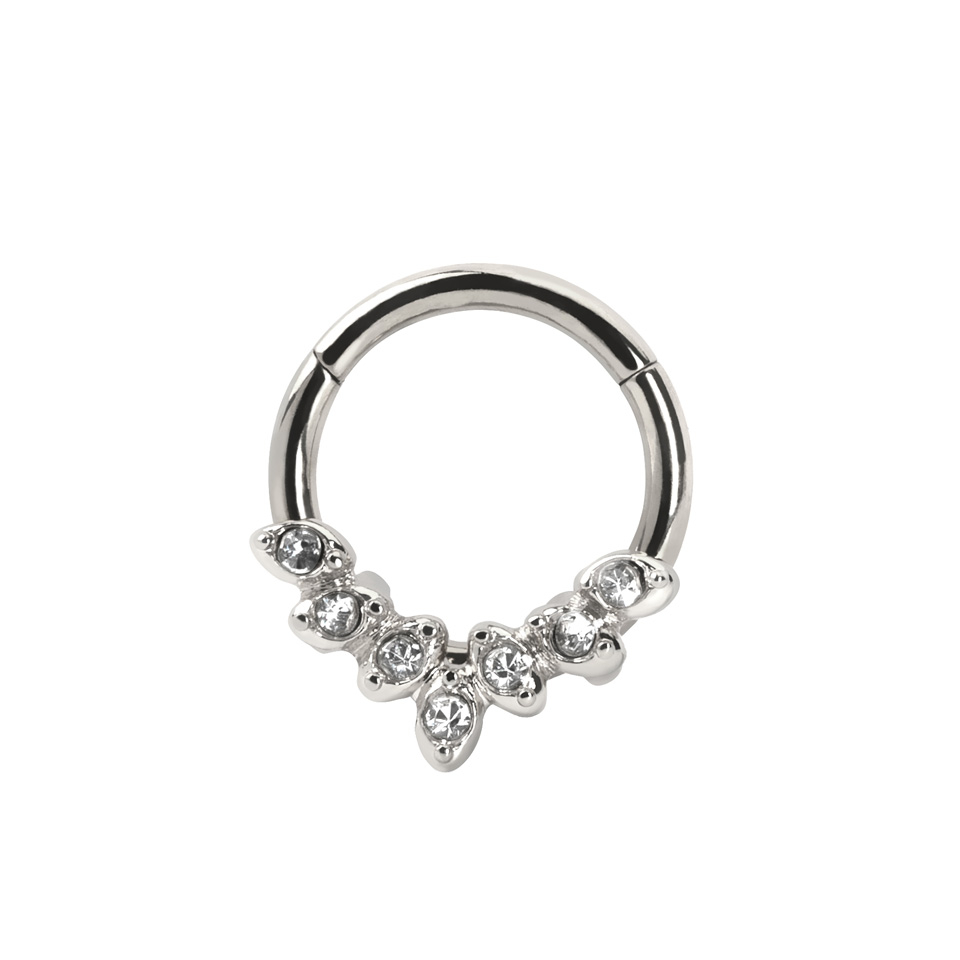 Nome: Cerchio con cardine in acciaio chirurgico con 7 foglie in zirconia cubica
