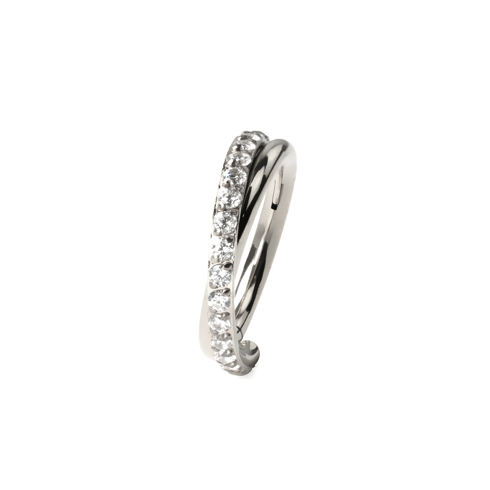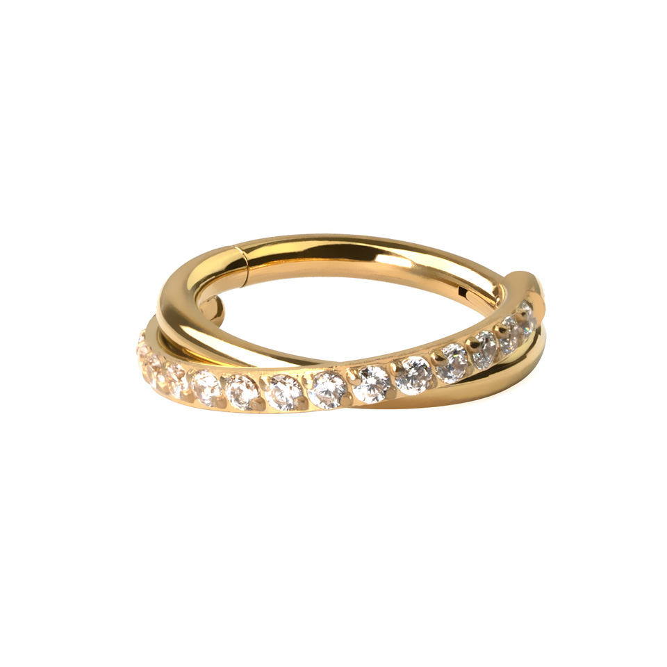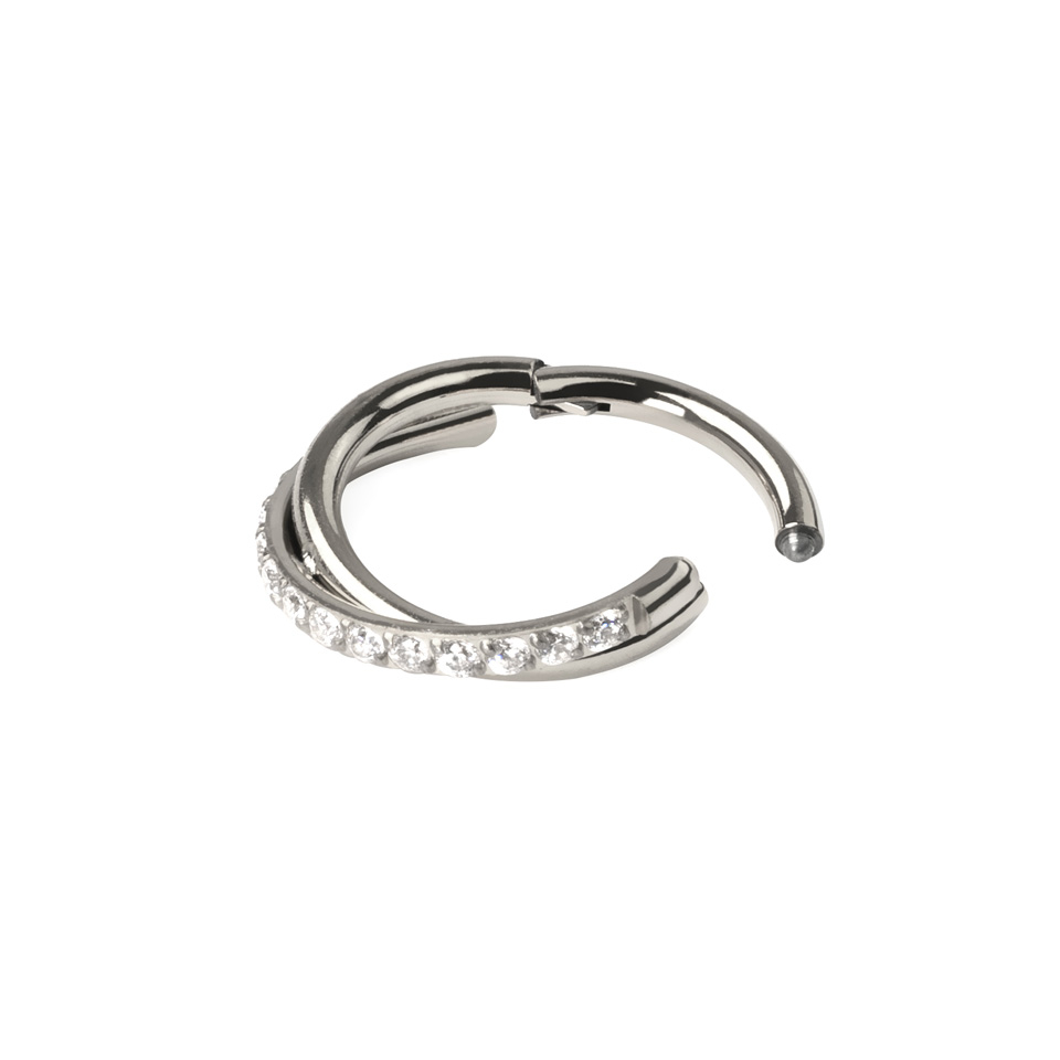 Il design incrociato e tempestato di pietre è perfetto per aggiungere scintillio ai tuoi piercing alle orecchie, ad esempio all'helix, daith, rook e ovviamente ai lobi.