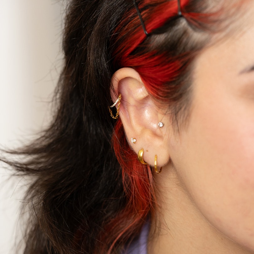 Disponibile nelle finiture oro giallo o grigio brillante e con un diametro di 8 mm o 10 mm, questo cerchio aggiungerà un tocco di stile alle tue composizioni all'orecchio, ovunque tu scelga di indossarlo.