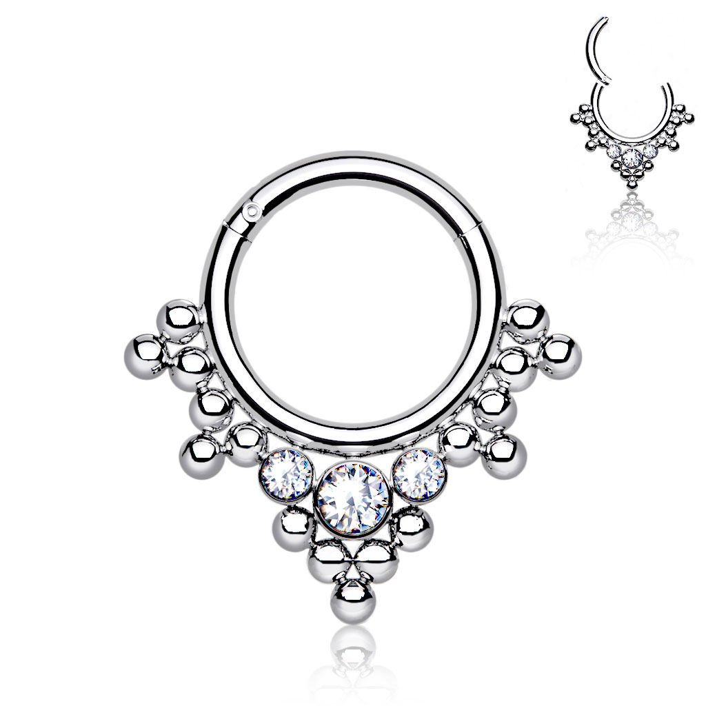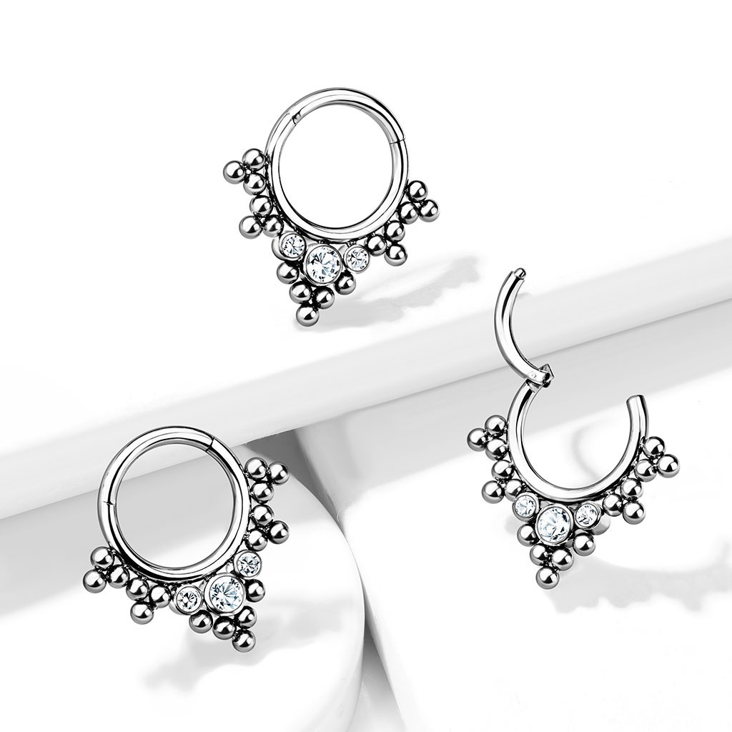 Cerchio con cerniera in titanio con perline e pietre