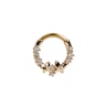 Questo graziosissimo cerchio con design frontale di farfalle presenta due farfalle circondate da piccoli zirconi. Il cerchio è dotato di cerniera, quindi è facile da inserire e fissare al tuo piercing.