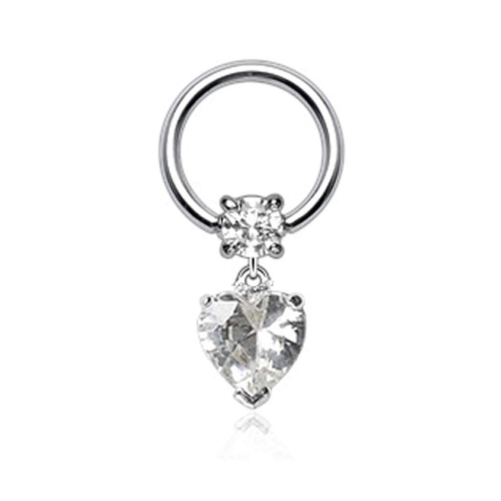 Qui ti presentiamo un cerchio con sfera dallo dal design davvero dolce, dotato di un piccolo pendente con cuore. É un cerchio ideale per i piercing helix o quelli intimi con il suo look tenero e seducente. Il gioiello è realizzato in acciaio chirurgico, e il cuore è fatto di una pietra chiara. La pietra ha un taglio a diamante, quindi riflette la luce da tanti angoli e si illumina come il sole quando la muovi.