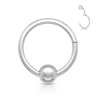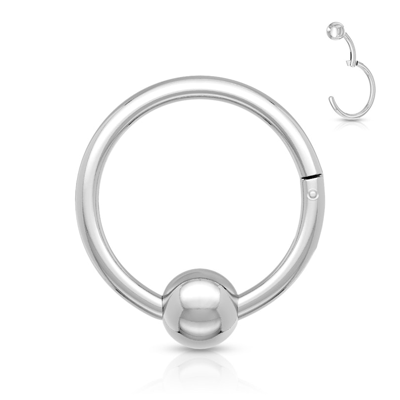 Di solito quando si parla di cerchi con sfera, quest'ultima è usata come sistema di bloccaggio e può essere quindi rimossa e reinserita. Tuttavia, non è il caso di questo gioiello. Qui, la sfera fa parte dell'anello stesso: è collegata ad una piccola barra, che viene fissata al resto del gioiello grazie a un cardine. Ciò ti consente di aprire facilmente il gioiello con un semplice click. E quando vuoi chiuderlo, fai la stessa cosa ma esattamente al contrario - la fine del cerchio si inserirà in una piccola rientranza che ha la sfera.