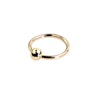 Splendido e semplice cerchio con sfera in stile abbastanza classico, realizzato però in oro 14 carati al posto dei materiali più comuni che vengono normalmente utilizzati per i cerchi con sfera. I cerchi con sfera, o captive bead rings, sono molto popolari grazie al loro semplice design e alla mancanza di viti o filettature, dove spesso si accumulano sporcizie o batteri. La sfera è tenuta ferma in modo sicuro tra le due estremità del cerchio ed è fissata grazie a due piccole concavità su ogni lato della sfera, nella quali il cerchio si incastra alla perfezione.