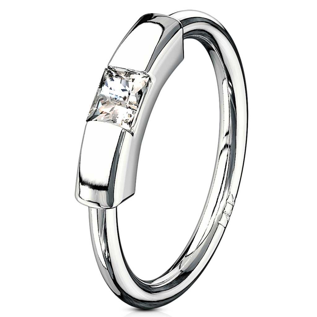 Nome: Cerchio in oro 14K con pietra quadrata