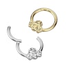 I cerchi con cardine sono scelte convenienti per i piercing al septum e all'orecchio, come il tragus, anti-tragus e rook, dove lo spazio è minimo. Questo tipo di cerchi infatti non ha nessuna parte rimovibile, e il loro meccanismo è semplicissimo: apri il piccolo segmento, inserisci il cerchio nel piercing e chiudi il segmento con un semplice click.
